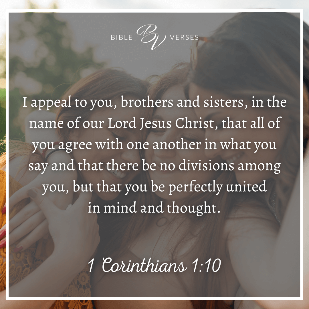 I appeal to you, brothers and sisters, in the name of our Lord Jesus Christ, that all of you agree with one another in what you say and that there be no divisions among you, but that you be perfectly united in mind and thought.